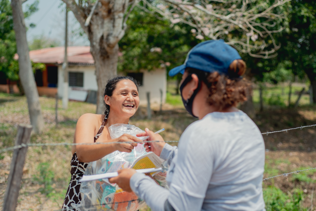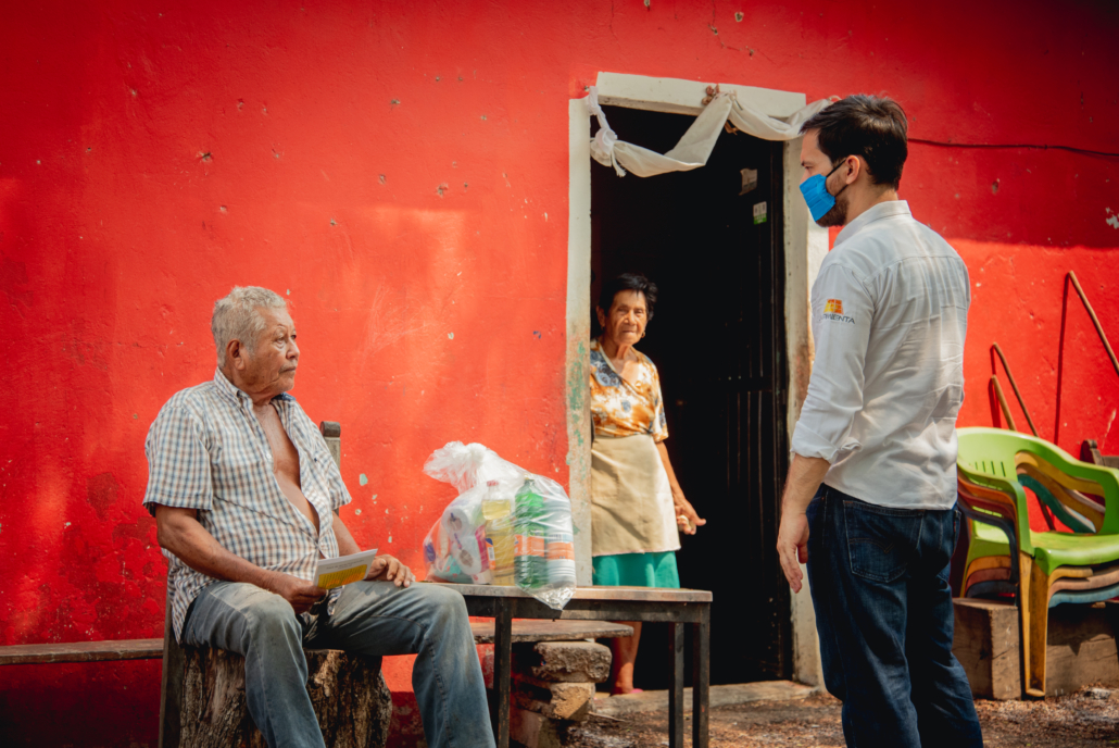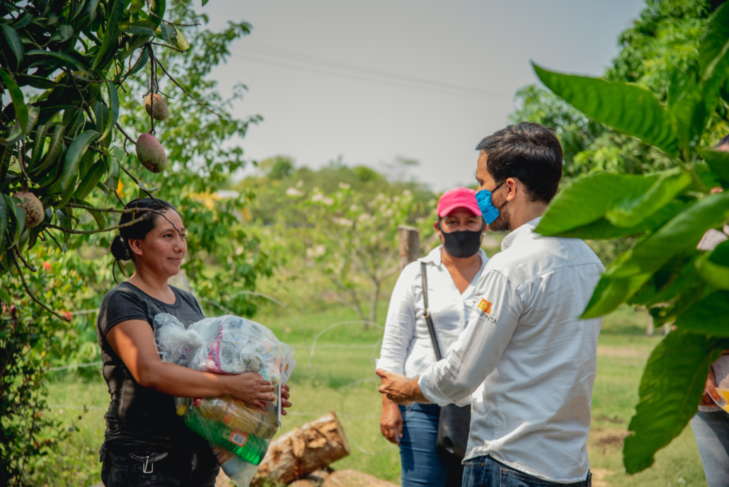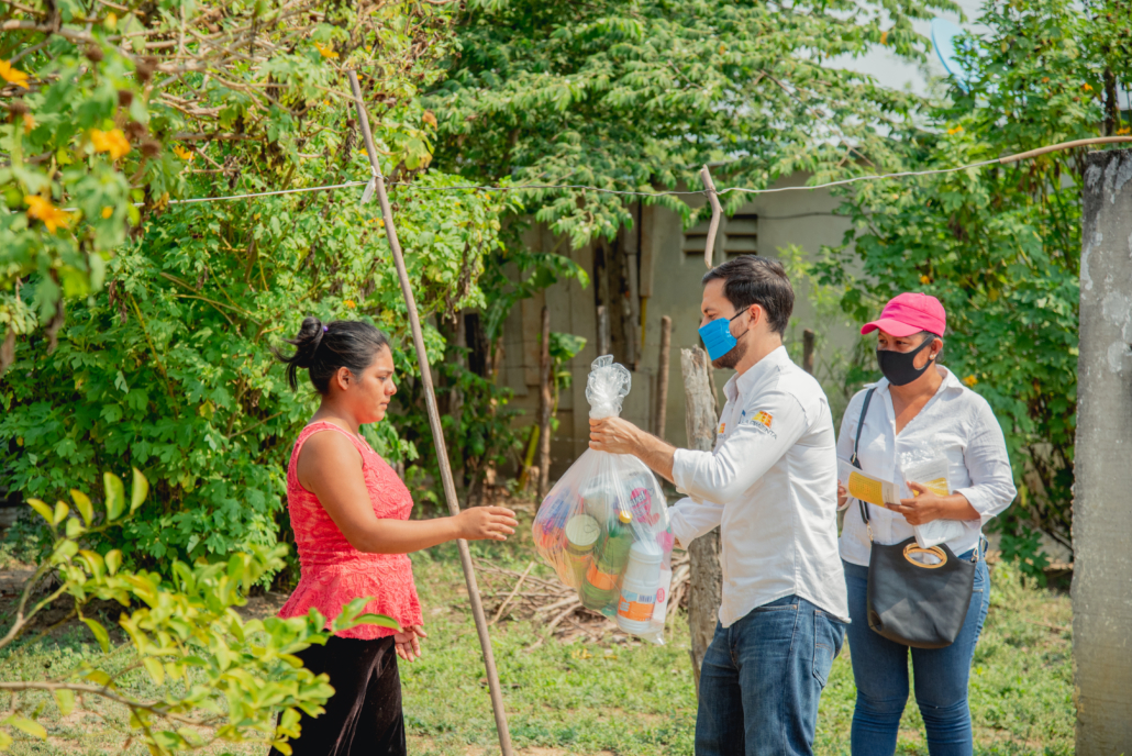 DONATIVO. En apoyo al cumplimiento de las medidas sanitarias establecidas por las autoridades de salud estatales y nacionales, se realizó la donación de cubrebocas y gel antibacterial, y para el abastecimiento de productos básicos alimenticios y de limpieza se donaron despensas beneficiando a las familias (90 familias) de Vista Alegre, Tres Valles y Justo Sierra.