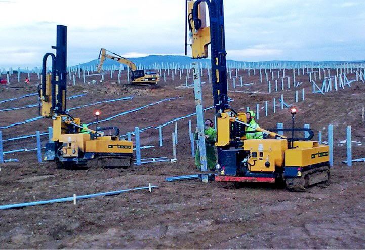 Una vez finalizadas las actividades de construcción de accesos al interior del proyecto y cimentación de subestación y línea de transmisión, se comenzará con la instalación de las estructuras de soporte, las cuales se basarán en el hincado de pilotes mediante su perforación a una profundidad aproximada de 2 m. A continuación se muestra la siguiente imagen a manera de referencia.